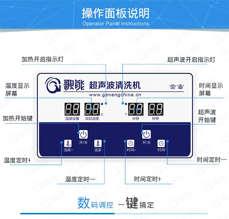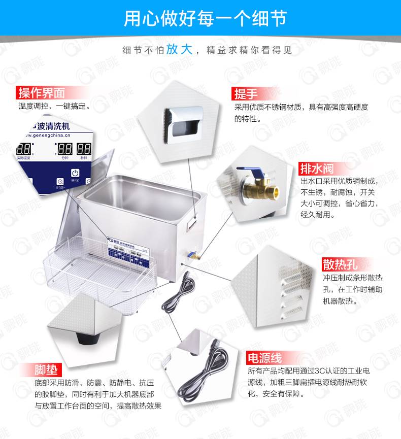 产品详情:mini超声波清洗机歌能G-030S可清洗义齿眼镜的工艺饰物数字定时加热型;用到数字面板控制工作时间,并可以加热水开展消毒和灭菌,适用于诊所,牙医,实验室等处所。